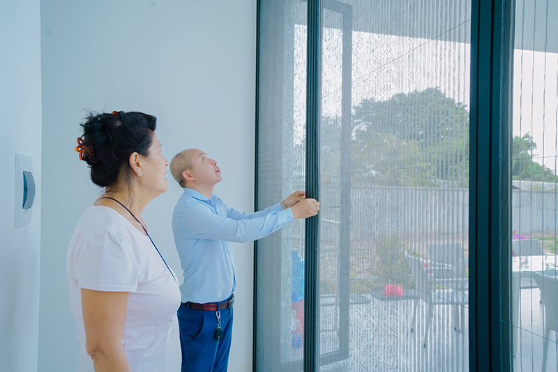 - Ngăn chặn muỗi và các loại côn trùng hiệu quả: Cửa được làm từ lưới chống muỗi chất lượng cao, có độ dày từ 18-20 mesh, giúp ngăn chặn hiệu quả sự xâm nhập của muỗi, ruồi, gián, kiến,…