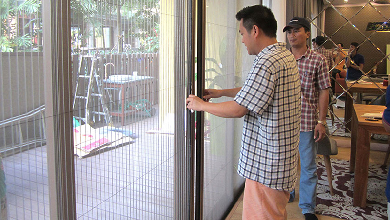 - Bảo dưỡng cửa đi chống muỗi lưới xếp không ray