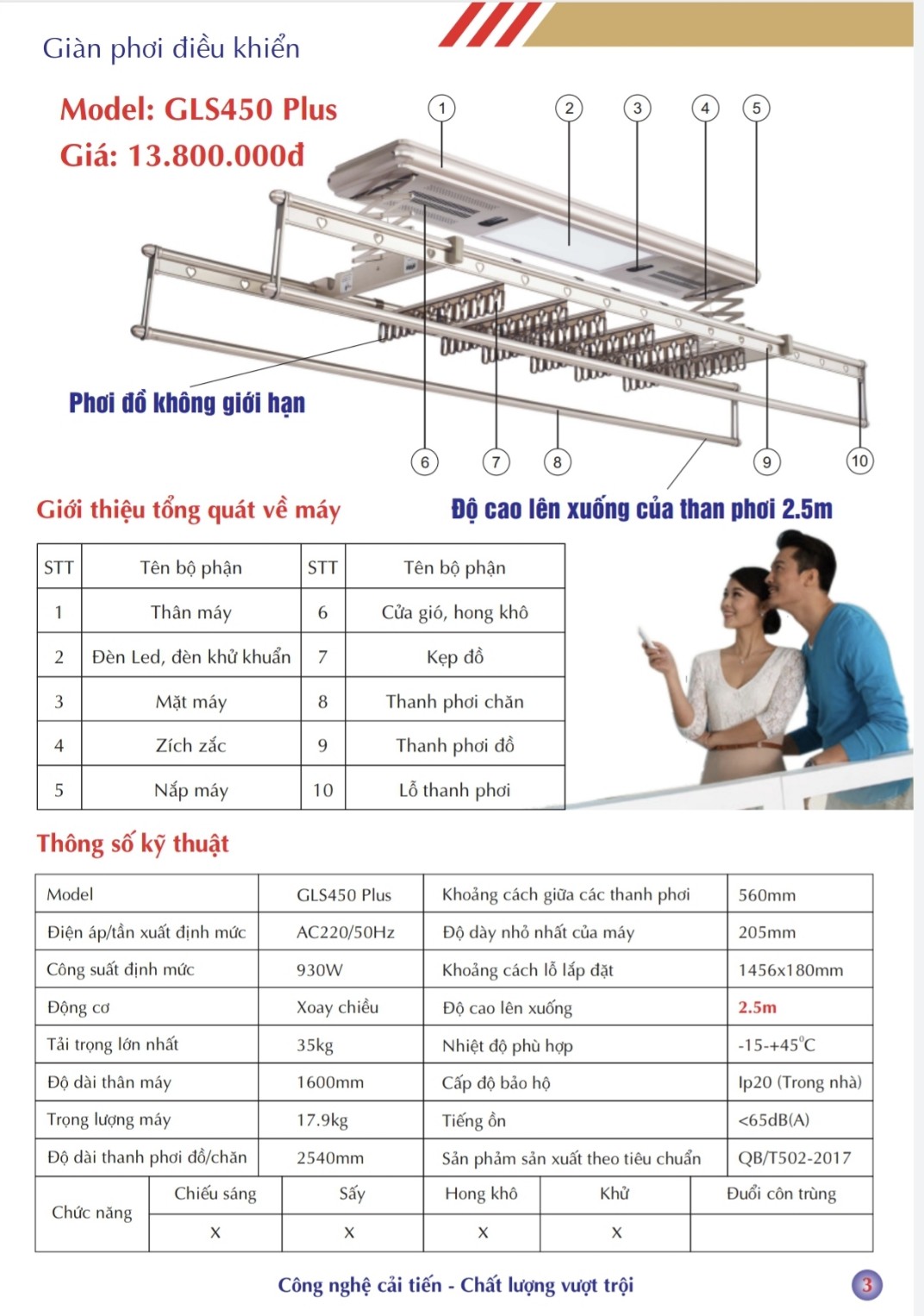 Giàn phơi điều khiển từ xa LXR 920 tích hợp nhiều công nghệ tiên tiến. Vì thế mang lại nhiều ưu điểm vượt trội hơn so với sản phẩm truyền thống. Hiện nay trên thị trường có rất nhiều các sản phẩm khiến người tiêu dùng còn băn khoăn về chất lượng cũng như giá cả. Bảo hành chính hãng lên đến 15 năm,Tải trọng 150kg – 250kg