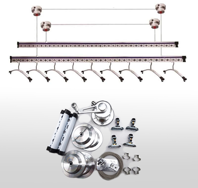 - Bao gồm : Bộ tời, 1 Dẫn hướng, 4 Buli(Dòng dọc), 2 Thanh phơi, Cáp giàn phơi (dài 7m).