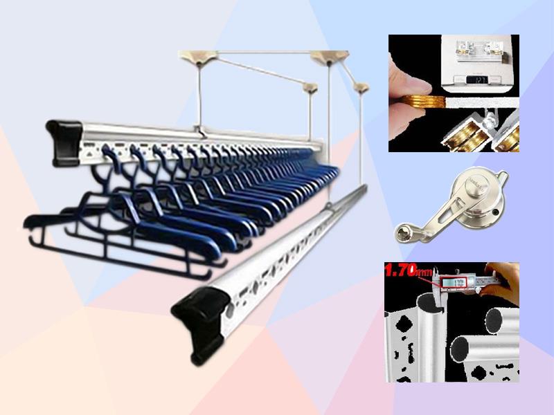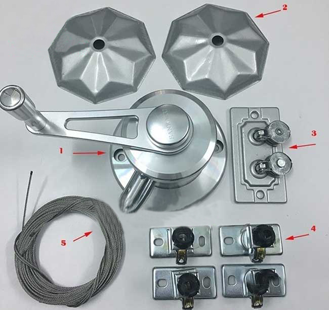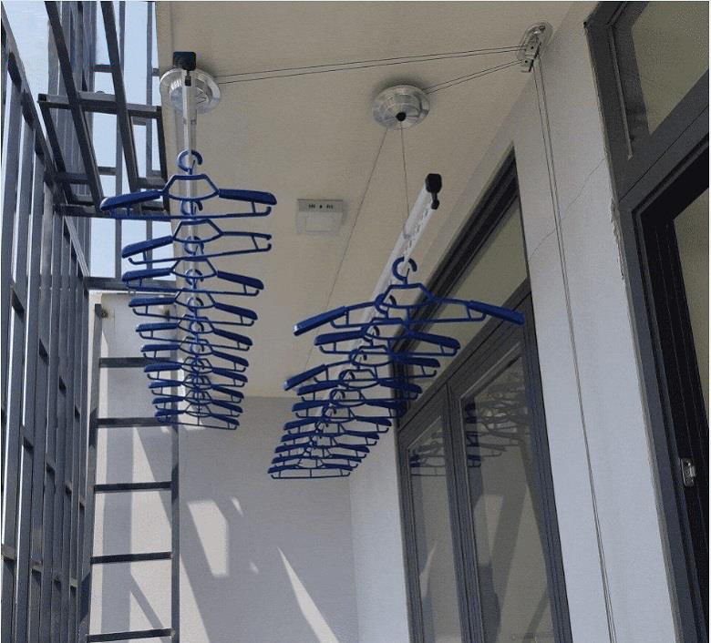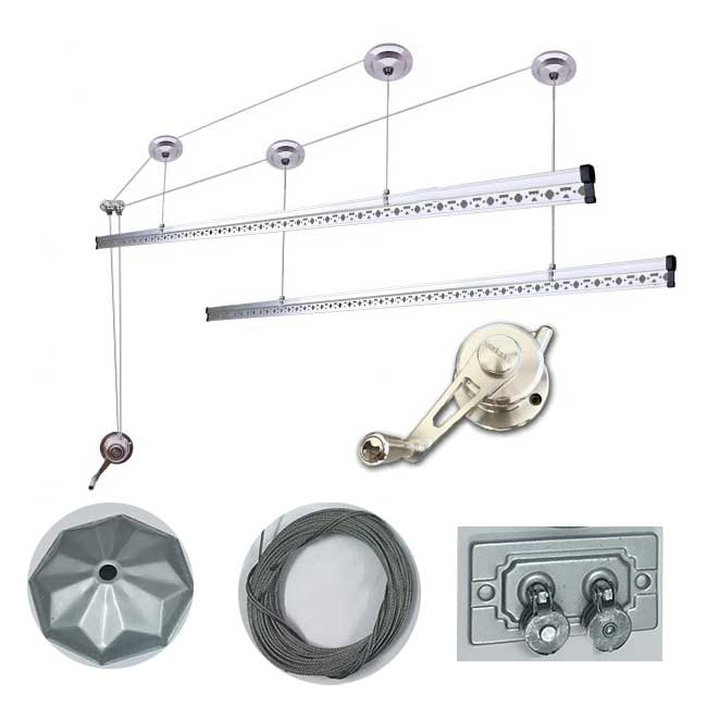- Bộ linh kiện bao gồm: 1 Bộ tời, 1 Dẫn hướng, 4 Buli(Dòng dọc), 2 Thanh phơi, Cáp giàn phơi (dài 6m).